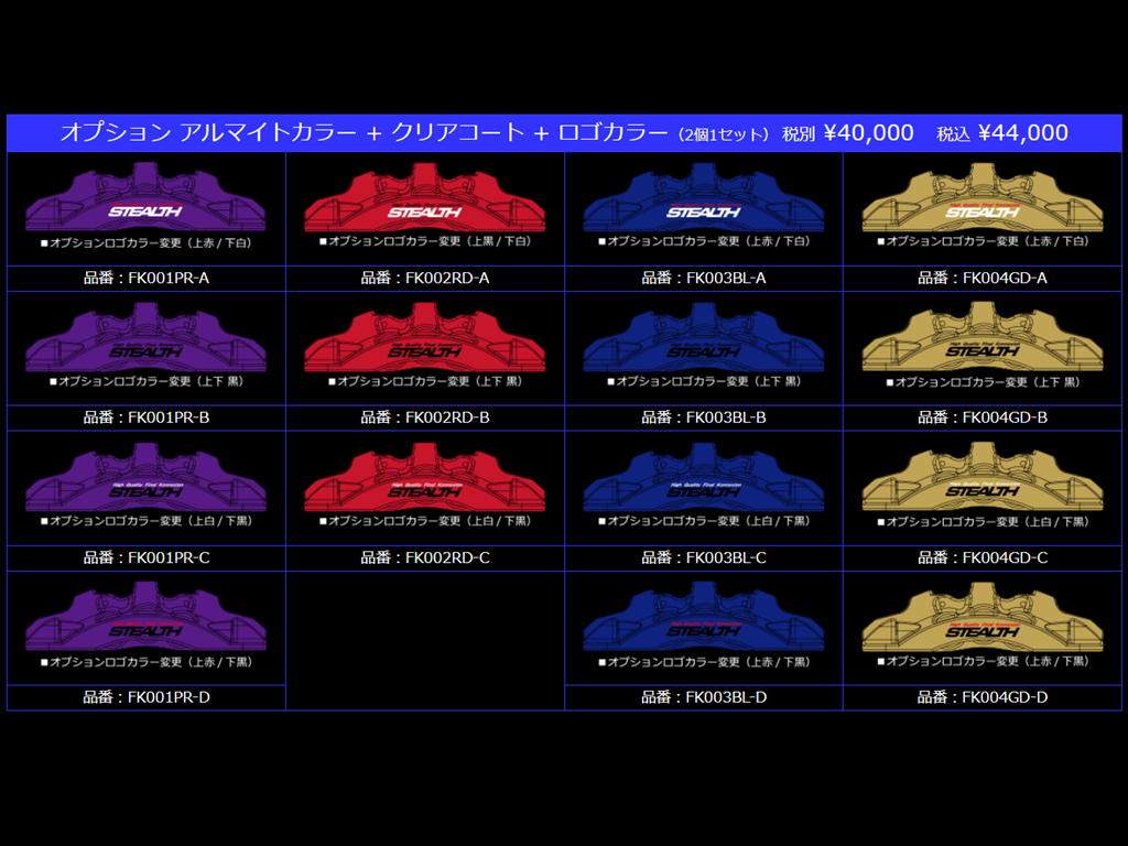 ・アルマイトカラー + クリアコーティング(正面ロゴ部分のみ)+ ロゴカラー変更 1SET/¥44,000UP
