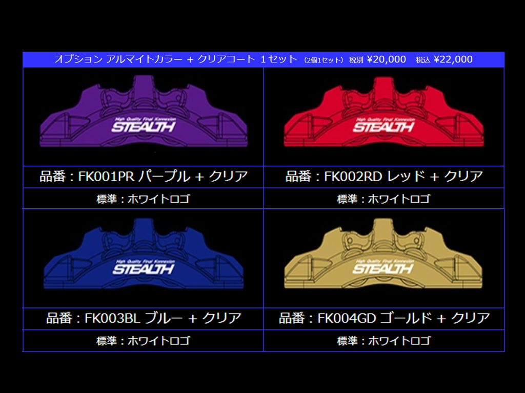・アルマイトカラー + クリアコーティング(正面ロゴ部分のみ)+ ロゴカラー変更 1SET/¥44,000UP